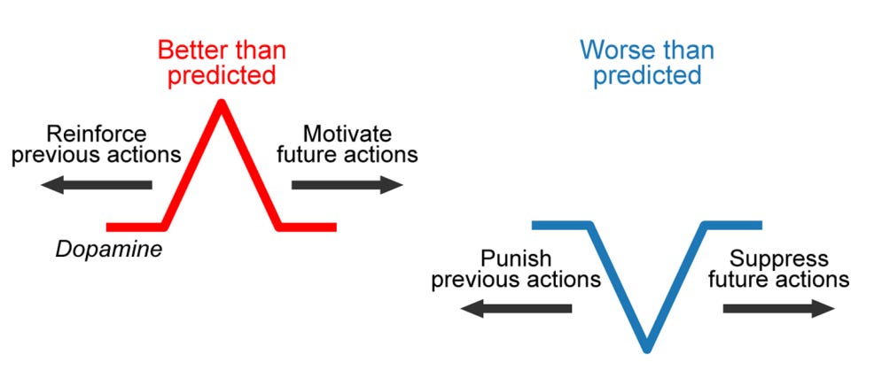 Another problem with these dopaminergic apps is that they are built around variable rewards: unpredictable scrolling and algorithms that track your watch time, likes, saves, and shares. Wolfram Schultz, a neuroscientist at the University of Cambridge, found that dopamine neurons fire strongest not for the reward itself, but for the surprise of getting more than you anticipated. Once a stimulus becomes predictable, the response fades out entirely. So, the possibility that the next swipe might deliver something better than the last is what keeps you pulled in, and what could turn a harmless 30-minute scroll into your whole afternoon gone.